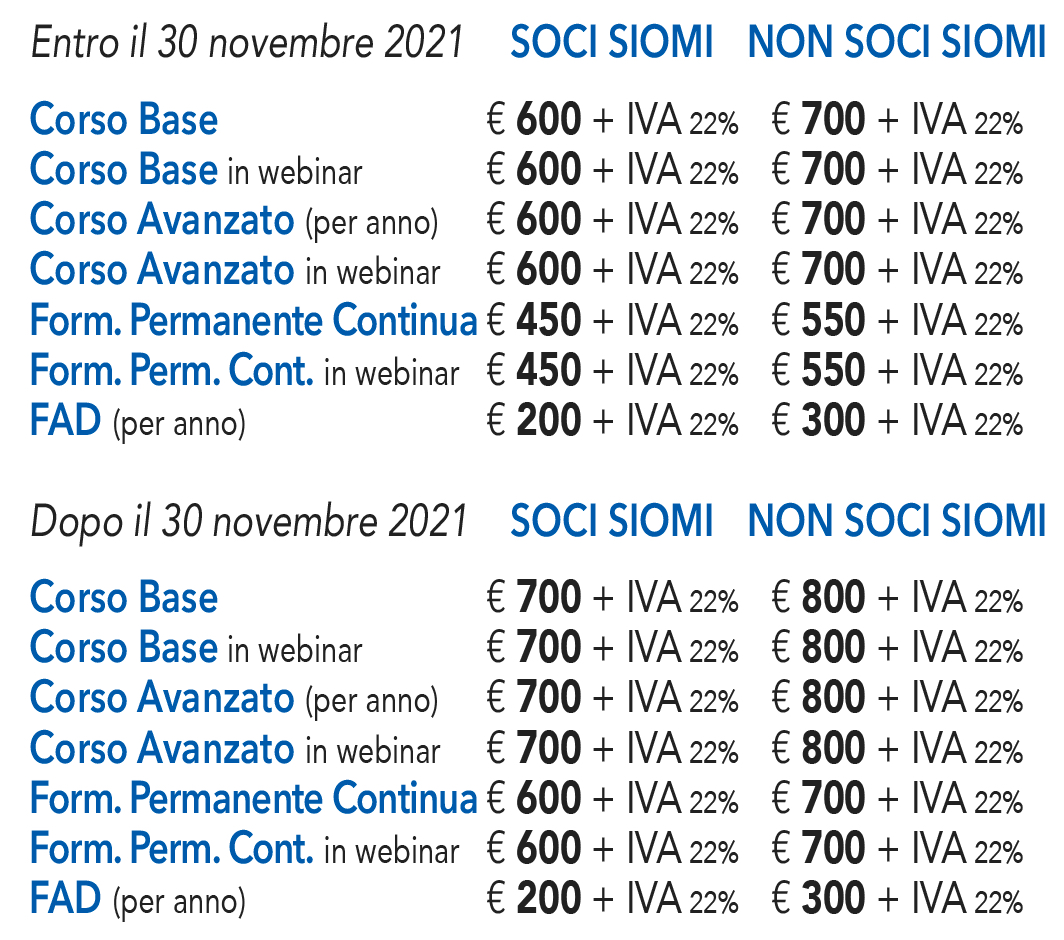 Indicare nella causale “Iscrizione Scuola SIOMI” e città dove si svolge il corso.